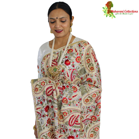 Maharani's Party Wear Organza Silk Saree - Cream Floral (with stitched Petticoat)