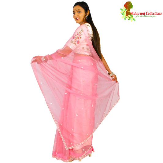 Maharani's Designer Party Wear Organza Saree - Pink (with Stitched Petticoat)
