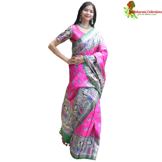 Maharani's Pure Tussar Silk Saree (Silk Mark) - Magenta with Madhubani Hand Painting
