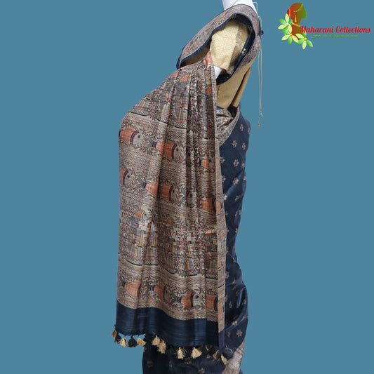 Pure Bhagalpur Tussar Silk Saree (Silk Mark) - Slate Blue Madhubani Work