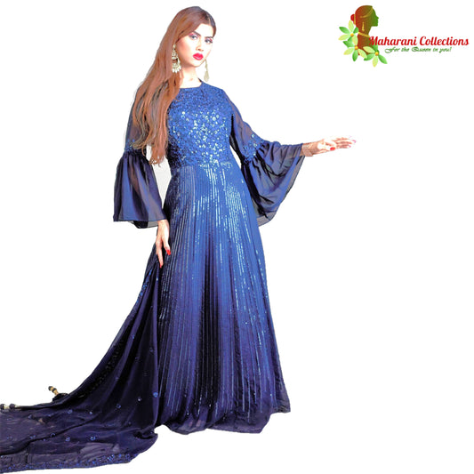 Maharani's Designer Gala Gown - Royal Blue with Thread, Sequins and Net Work