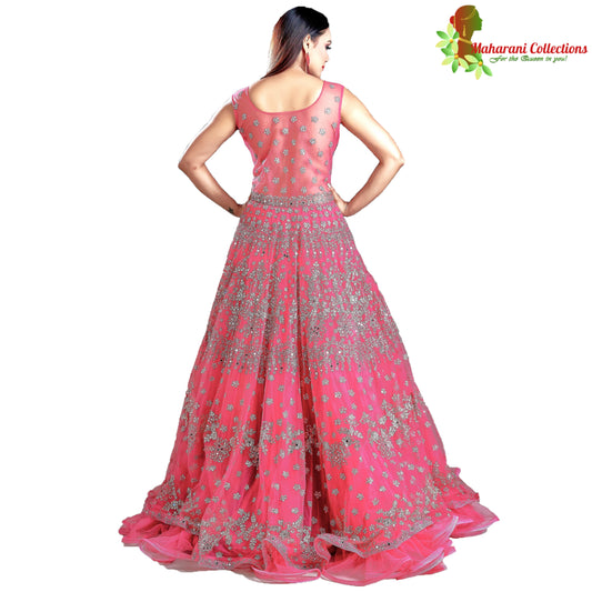 Maharani's Designer Ball (Princess) Gown - Solid Pink with Net, Beads, Sequins and Thread Work
