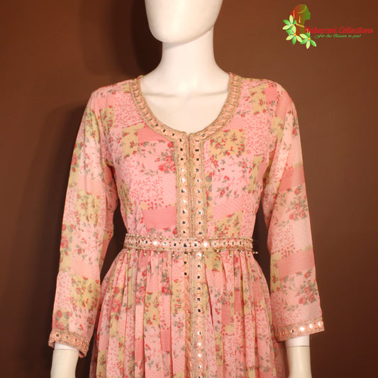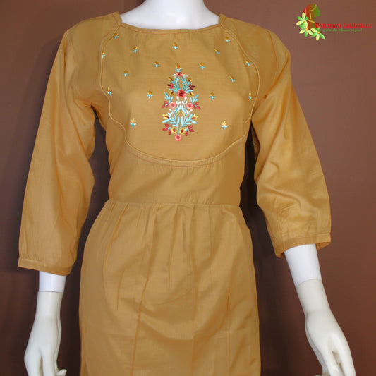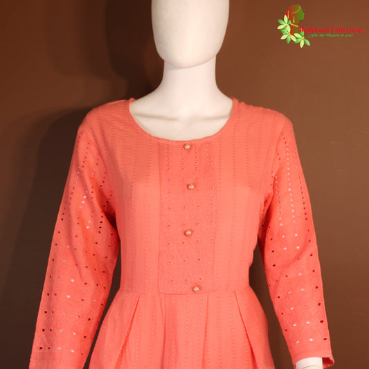 Maharani's Long Dress - Pure Cotton - Peach (L)