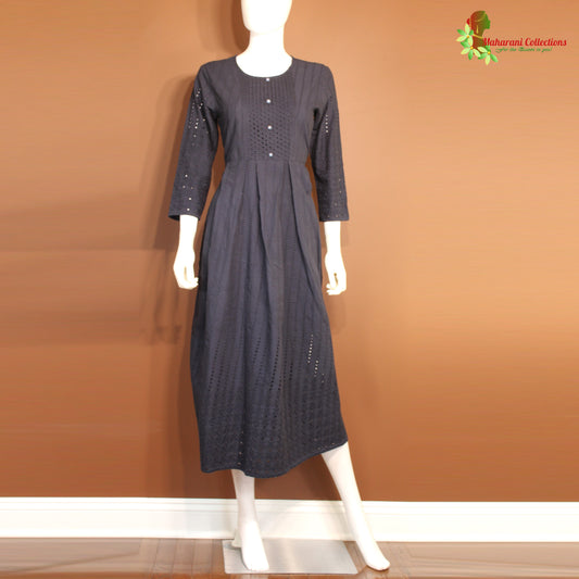 Maharani's Long Dress - Pure Cotton - Black (M)