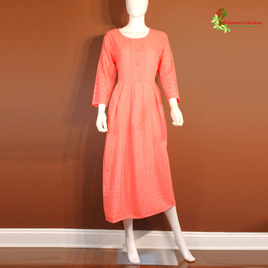 Maharani's Long Dress - Pure Cotton - Peach (S)