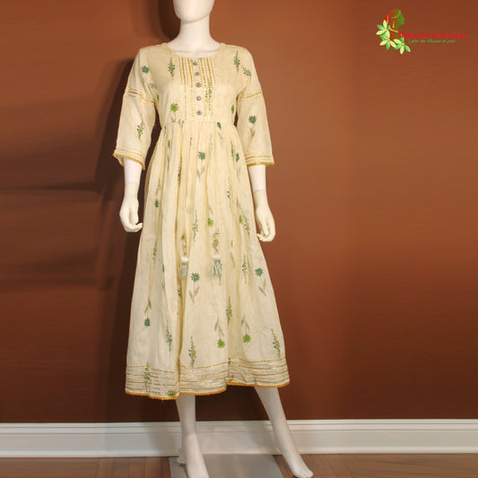 Maharani's Long Dress - Pure Cotton - Cream (S)