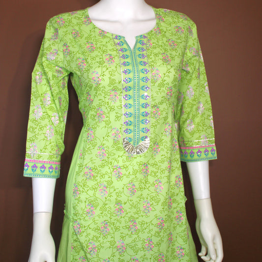 Maharani's Soft Cotton Long Dress - Light Green (M)