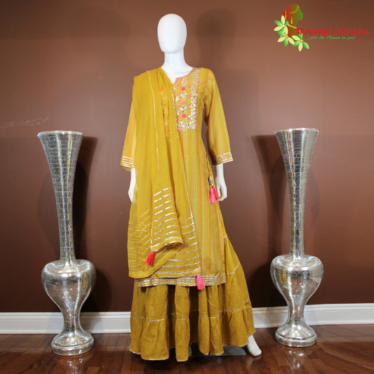Maharani's Long Dress - Pure Cotton - Mustard Yellow (S)
