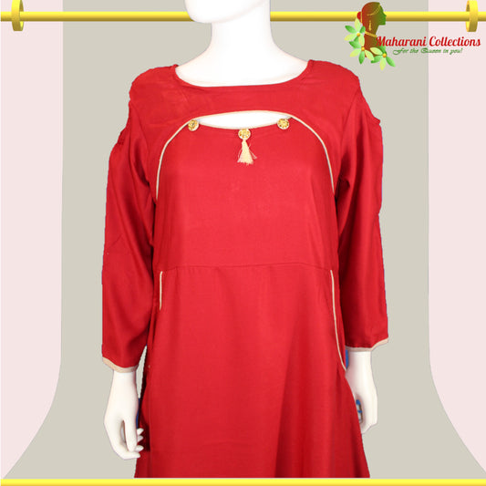 Maharani's Long Dress - Soft Cotton - Maroon (XXL)