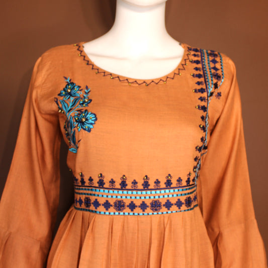 Maharani's Long Dress - Soft Cotton - Light Orange (M)