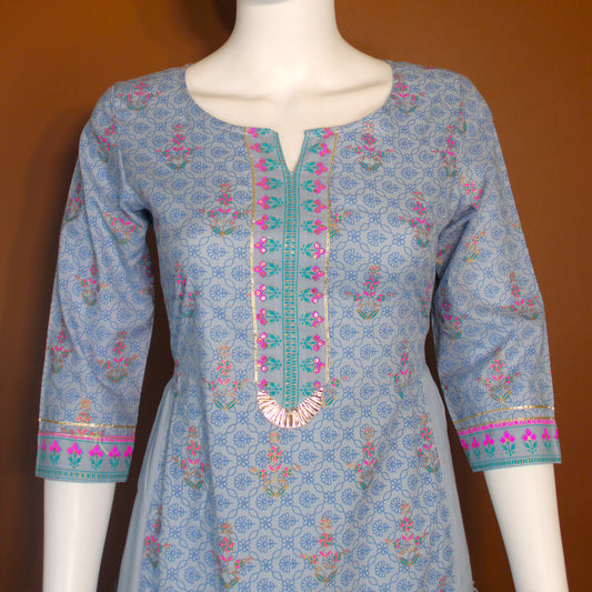 Maharani's Soft Cotton Long Dress - Light Blue (M)