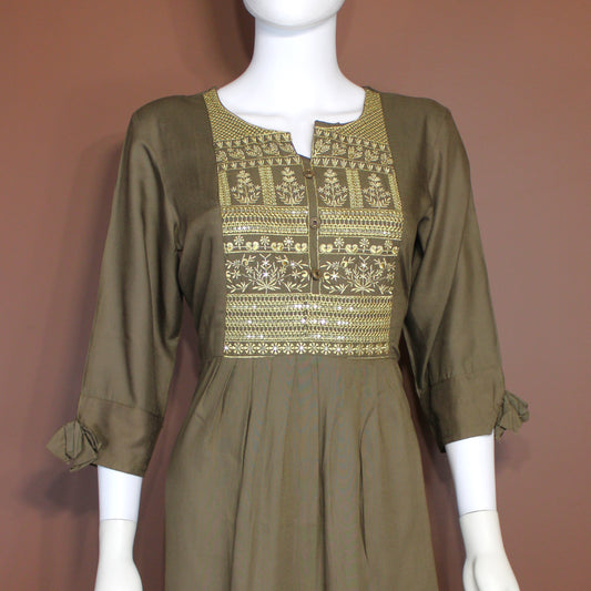 Maharani's Soft Cotton Long Dress - Olive Green (XL)