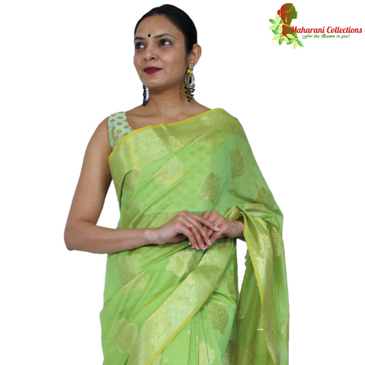 Maharani's Pure Banarasi Silk Saree - Asparagus Green (with Stitched Blouse and Petticoat)