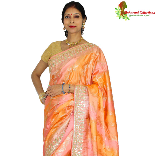 Maharani's Pure Banarasi Silk Rangkat Saree - Shades of Peach/Pink/Orange (with Stitched Petticoat)