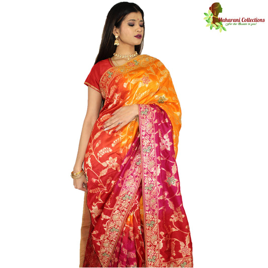 Maharani's Pure Banarasi Silk Saree - Shades of Red/Pink/Orange (with Stitched Petticoat)