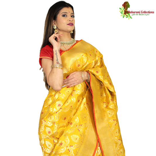 Maharani's Pure Banarasi Silk Saree - Deep Yellow (with Stitched Petticoat)