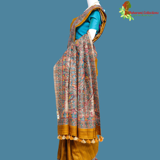 Pure Bhagalpur Tussar Silk Saree (Silk Mark) - Deep Mustard Madhubani Work
