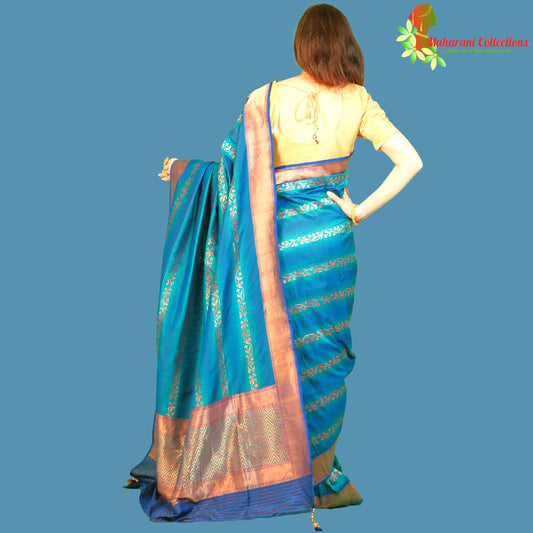Maharani's Pure Handloom Banarasi Katan Silk Saree - Indigo Blue