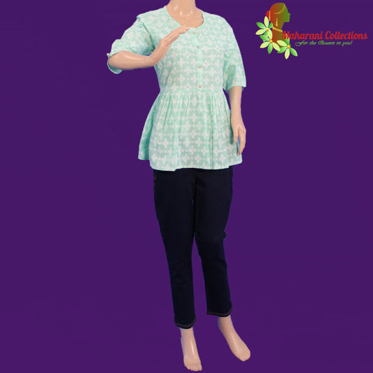 Kurti Top - Light Green Floral Traditional Short Kurti (S/M)