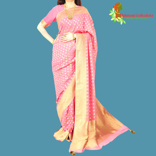 Maharani's Pure Banarasi Khaddi Georgette Saree - Pink (with Stitched Blouse and Petticoat)Regular price €232,95 EURRegular priceUnit price per-