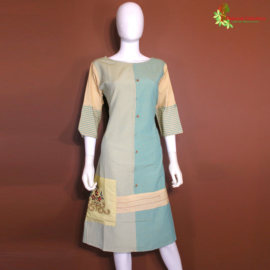 Maharani's Soft Cotton Short Dress - Golden/Green (M)