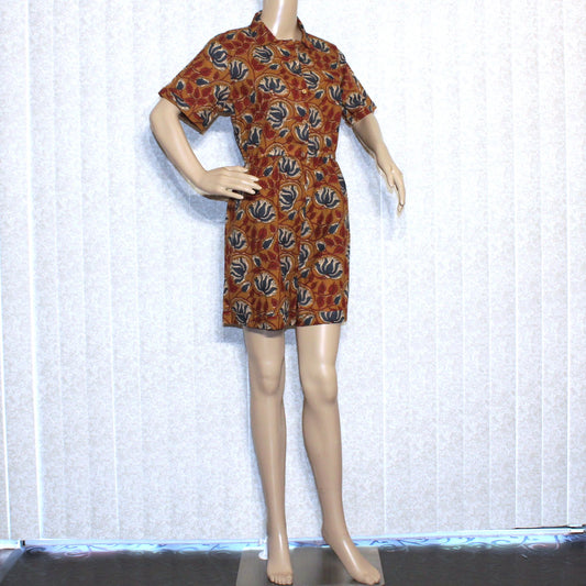 Short Jump Suit - Half Sleeve Short Brown Printed