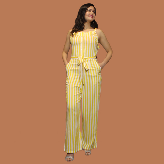 Soft Cotton Jump Suit - Sleeveless Yellow and White (L)