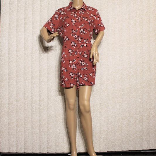 Short Jump Suit - Half Sleeve Maroon/Pink Printed (L)