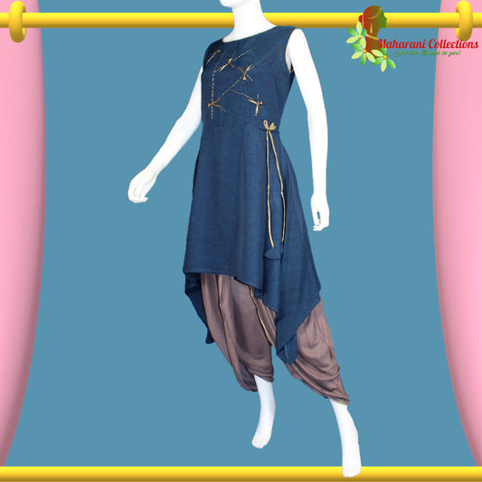 Tulip Sharara Suit - Dark Blue and Grey (L)