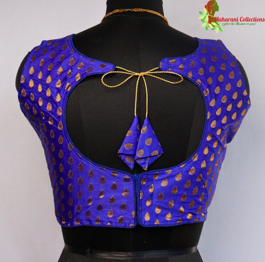 Maharani's Banarasi Silk Blouse with Golden Boota - Navy Blue