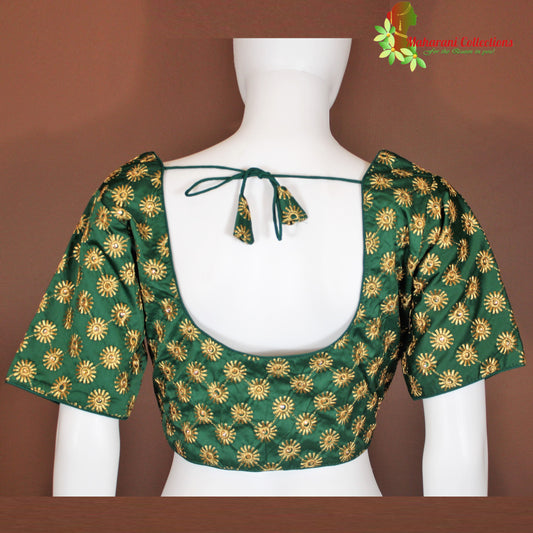 Maharani's Banarasi Silk Golden Zari Blouse - Green