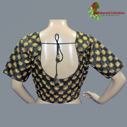 Maharani's Banarasi Silk Golden Zari Blouse - Black