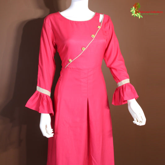Maharani's Long Dress - Georgette - Pink and White (S, M, L, XL)