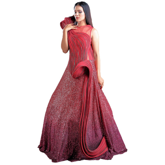 Maharani's Designer Ball (Princess) Gown - Wine color with Glittering Heavy Sequins Work