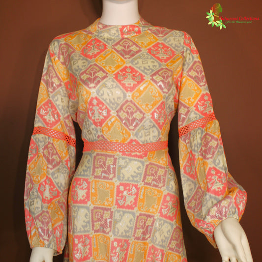 Maharani's Silk Long Evening Gown - Peach (XL)