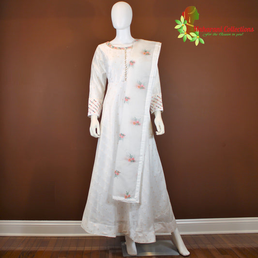 Designer Gala Gown (Anarkali Suit) - White (L) - Silk