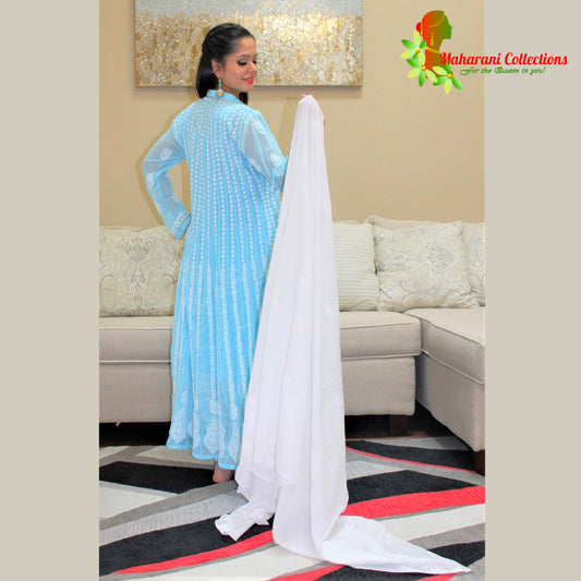 Maharani's Lucknowi Long Gown (Anarkali Suit) - Sky Blue (L)