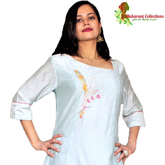 Maharani's Silk Long Evening Gown with Dupatta - Sea Green (M)