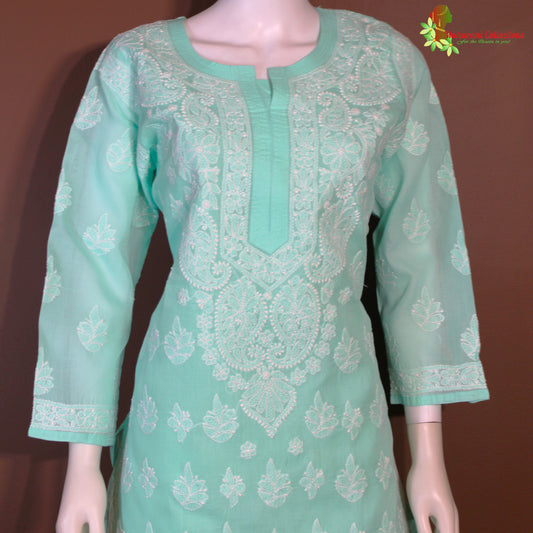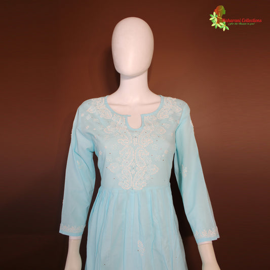 Maharani's Lucknowi Chikankari Long Top - Light Blue (L) - Pure Cotton