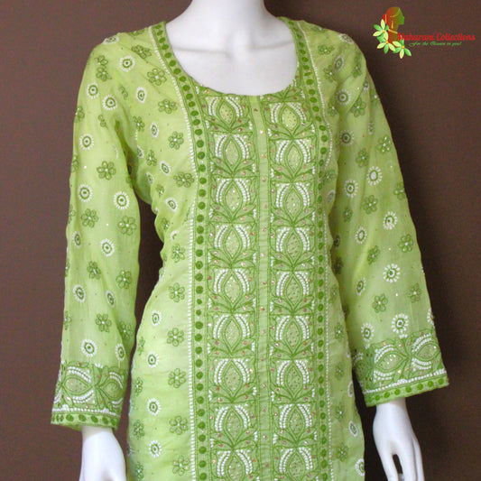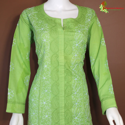 Maharani's Lucknowi Chikankari Pant Suit - Green (XL) - Pure Cotton