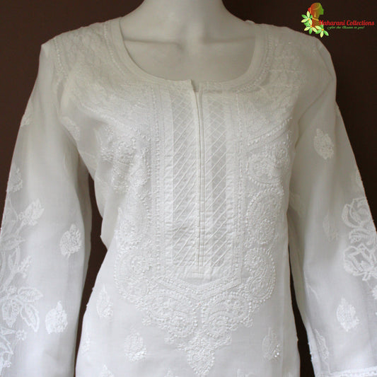 Maharani's Lucknowi Chikankari Kurta Top - White (XL) - Pure Cotton