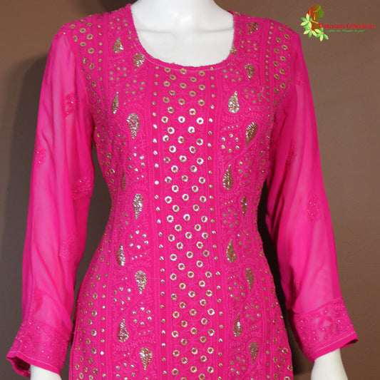 Maharani's Lucknowi Chikankari Top - Pink (L) - Pure Georgette