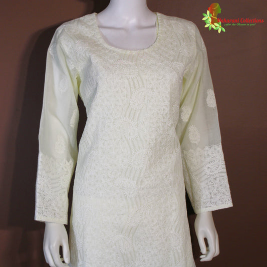 Maharani's Lucknowi Chikankari Top - Lemon Yellow (L) - Pure Georgette