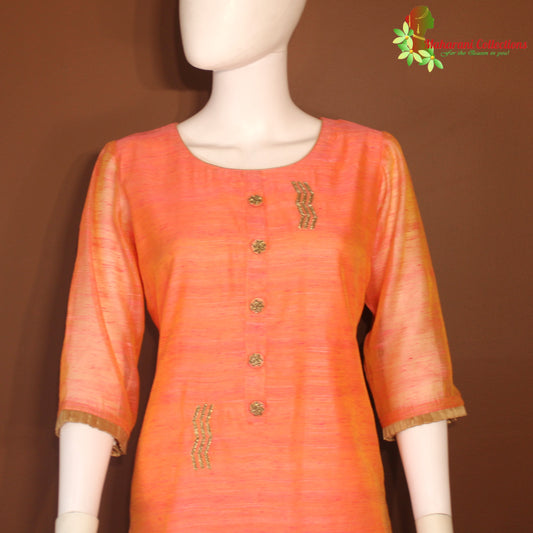 Maharani's Finest Silk Pant Suit - Pure Bhagalpur Tussar Silk - Orange (M)