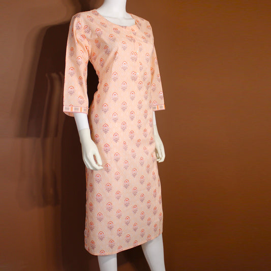 Maharani's Long Kurta Top - Soft Cotton - Light Peach (XL)