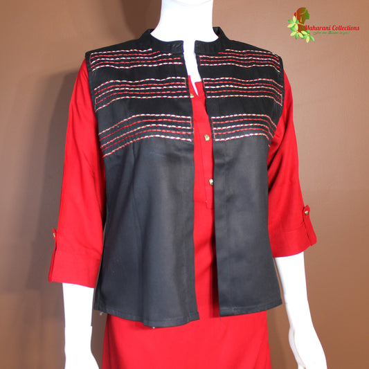 Maharani's Soft Cotton Kurta Top with Jacket - Red (XL)