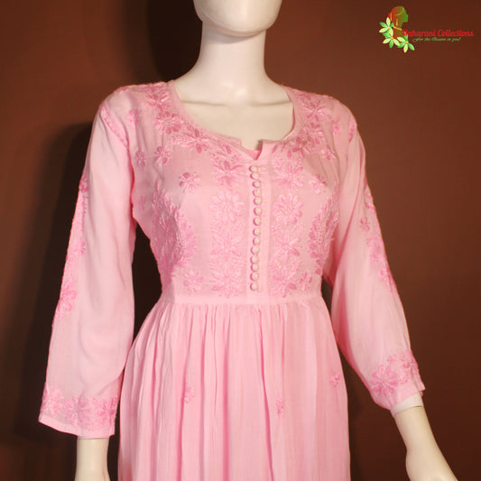 Maharani's Lucknowi Chikankari Kurta Top - Pink (M)
