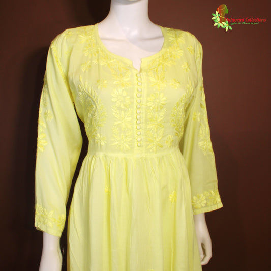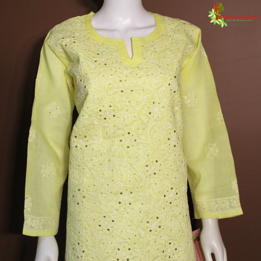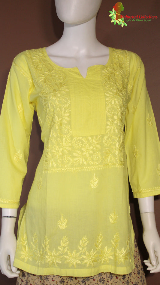 Maharani's Soft Cotton Lucknowi Kurta Top - Yellow (M)