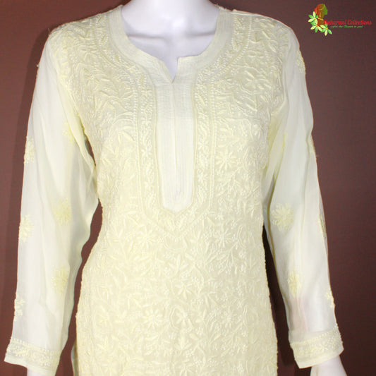 Maharani's Lucknowi Chikankari Georgette Kurta Top - Light Yellow (L)