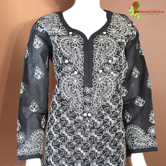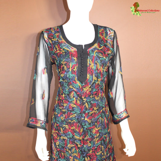 Maharani's Lucknowi Chikankari Georgette Top - Black (M)